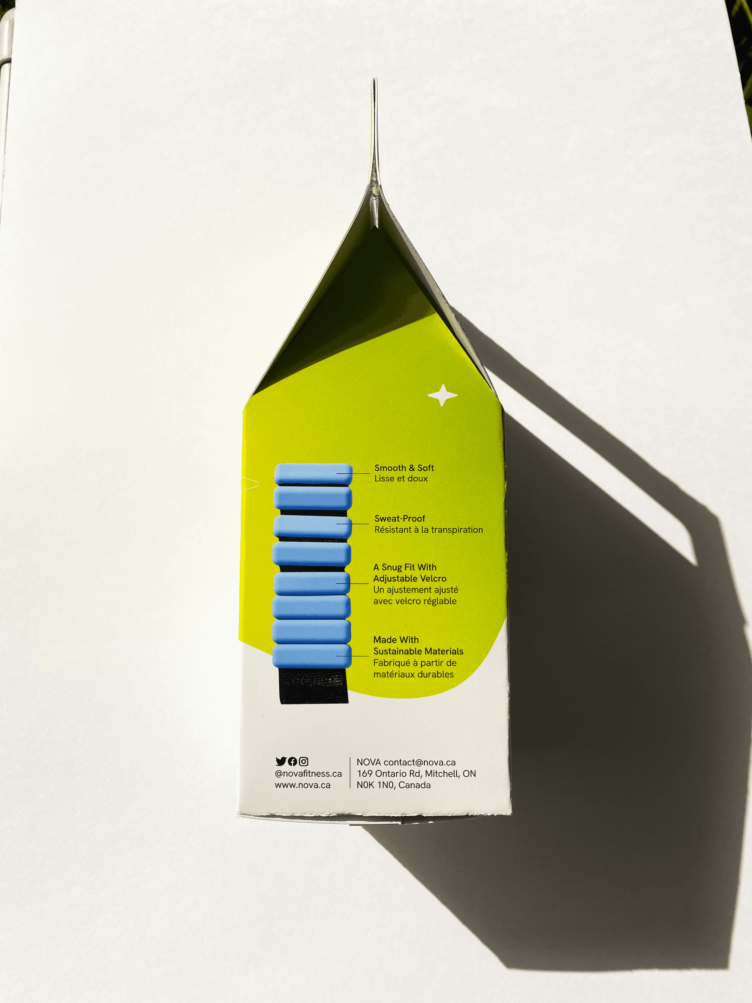 of nova (a star showing a sudden large increase in brightness) this brand provides their customers with a burst of motivation and encouragement to take on their fitness challenges and achieve their goals. Floating imagery combined with a dynamic, wavy band emphasizes the product's light weight. With QR codes to instructional workouts and ways to connect with other NOVA members, NOVA is dedicated to help all their customers, from beginners to fitness-enthusiasts, achieve a healthier, happier self.