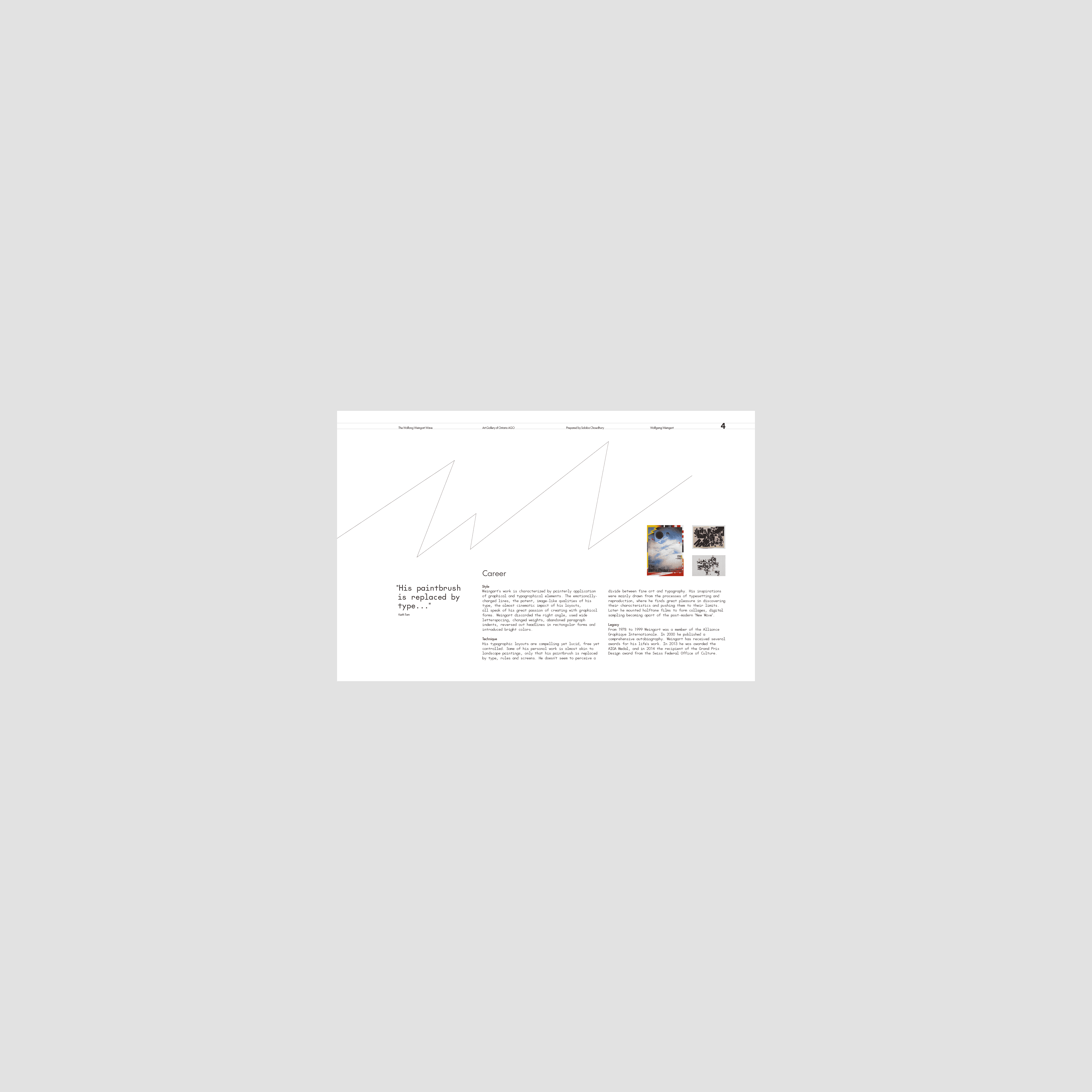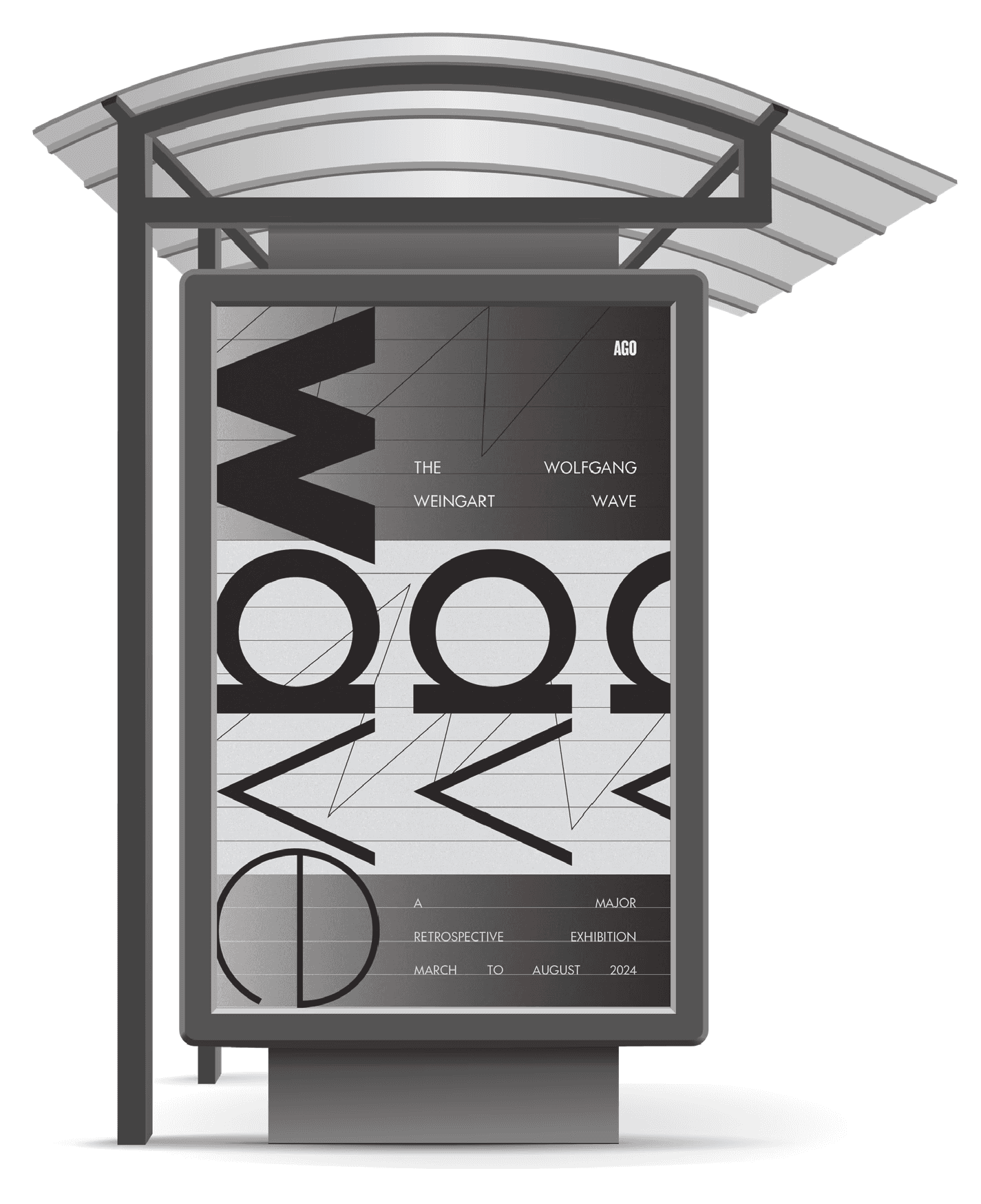 An exhibition on the graphic designer Wolfgang Weingart (1941-2021). This project includes a pitchbook for the fictional exhibit held at the Art Gallery of Ontario (AGO), complete with campaign mockups and a brief history of the designer.